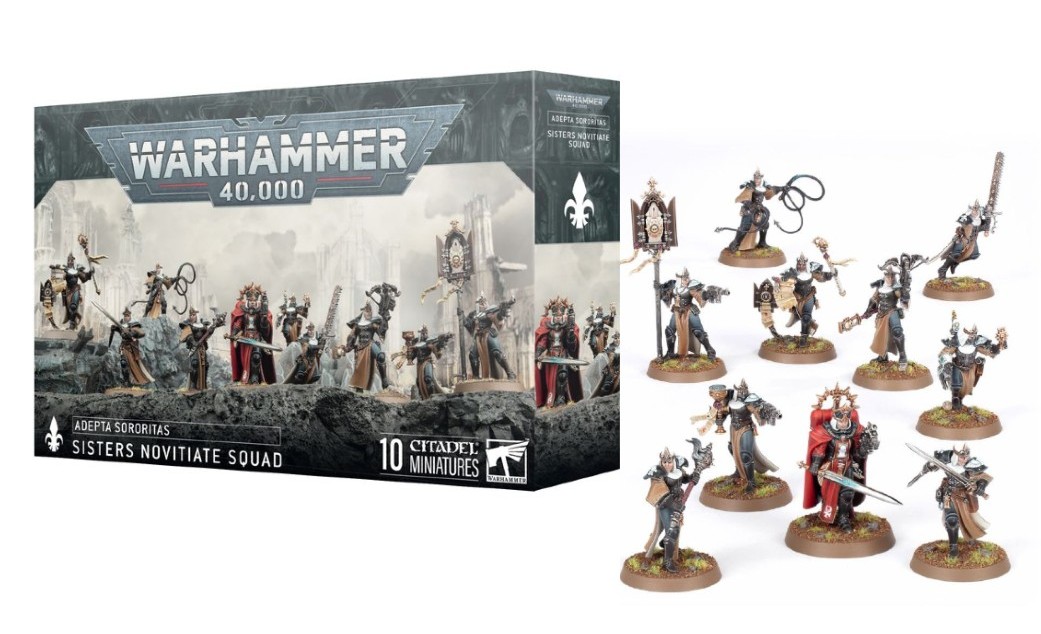 WARHAMMER 40K, ADEPTA SORORITAS SISTERS NOVITIATE – Sisters Novitiate are young recruits to the Adepta Sororitas. Trained by the Drill Abbots of the Schola Progenium, they are assigned to an Order Militant to gain combat experience and prove their mettle in the crucible of war. This multipart plastic kit builds 10 Sisters Novitiate.