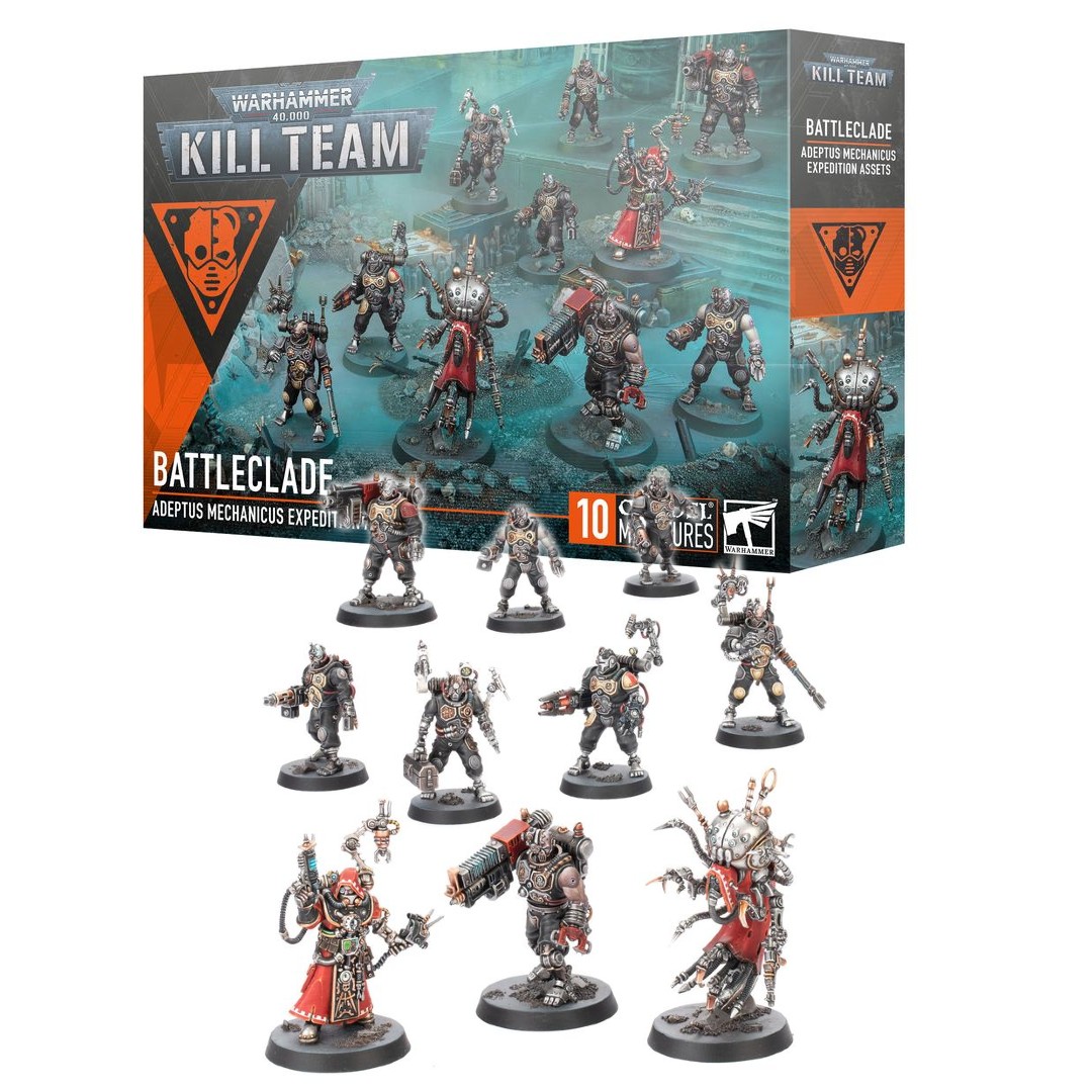 WARHAMMER 40K, BATTLECLADE: ADEPTUS MECHANICUS EXPEDITION ASSETS – Battleclades are teams of combat servitors led by a Technoarcheologist, assembled to aid them in dangerous but crucial missions. They will stop at nothing to complete the mission – it’s what they were made for. This multipart plastic kit builds 10 Battleclade miniatures.