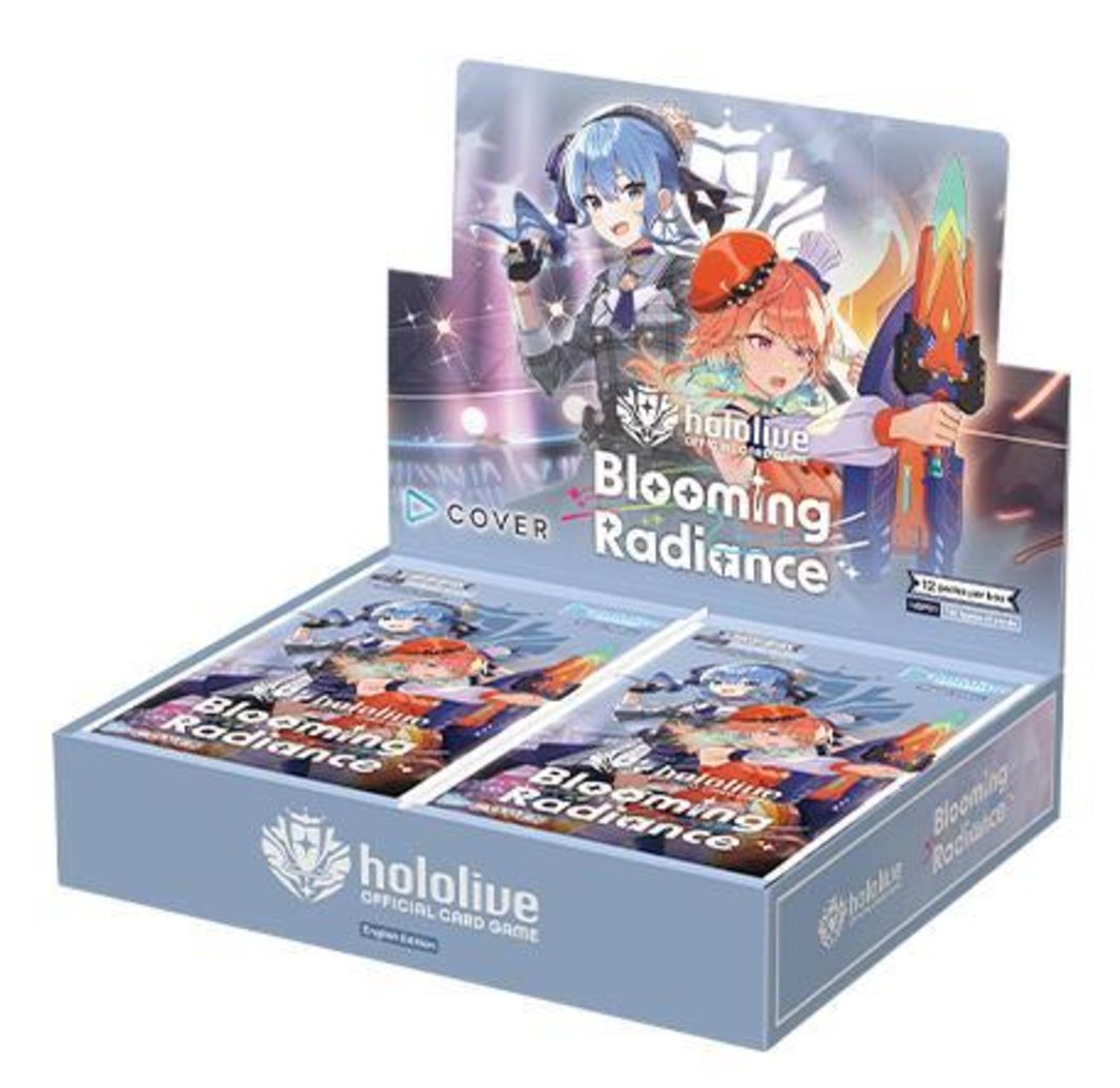 HOLO LIVE BLOOMING RADIANCE – A card game where fans can build an experience of supporting their Oshis, also called experiencing “holoLife”. 12 packs per booster box.