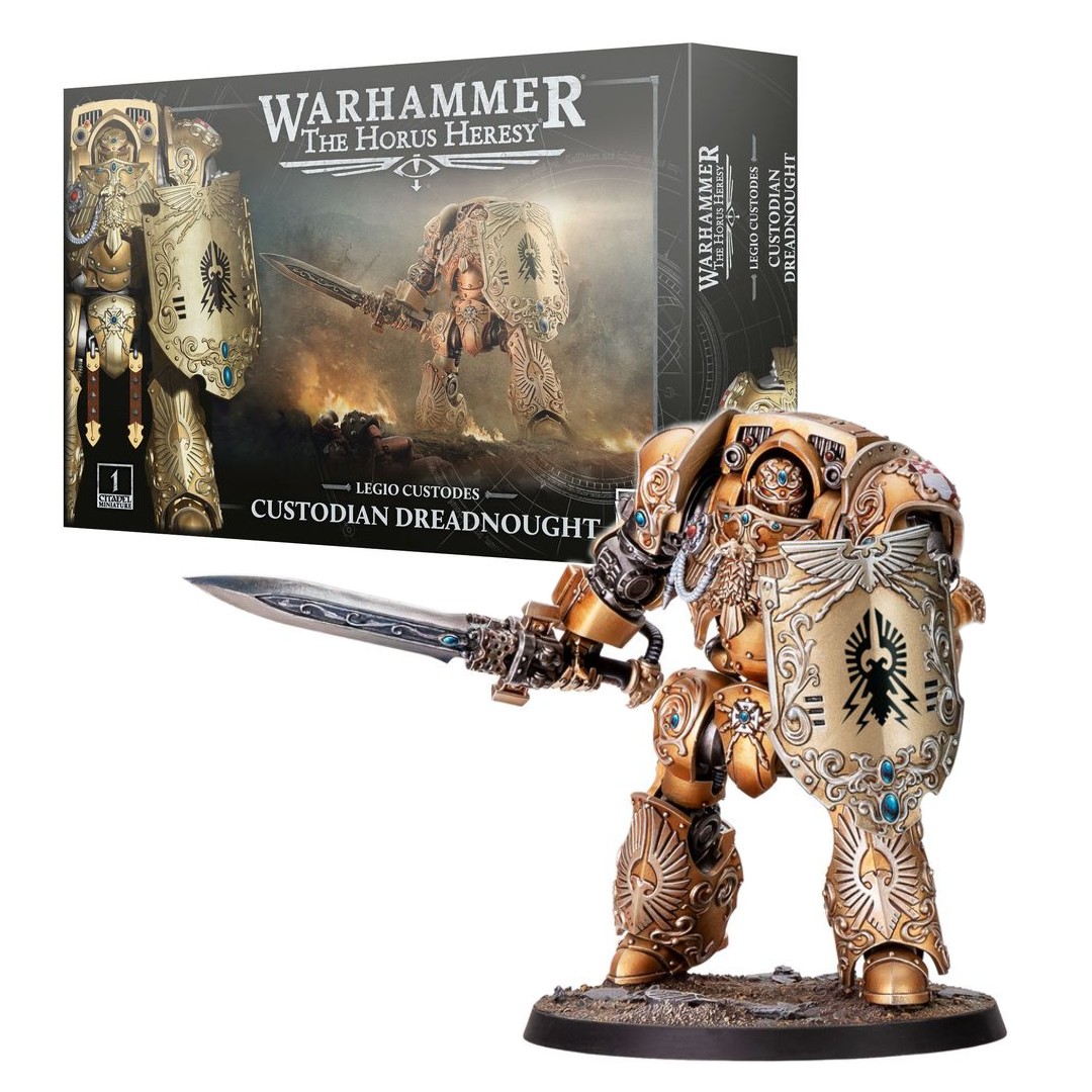 CUSTODIAN DREADNOUGHT – The Dreadnoughts of the Legio Custodes are advanced, beautiful machines that wed phenomenal strength and speed with the interred warrior’s own unmatched martial skill.