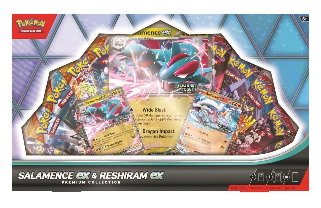 The Pokémon TCG: Salamence ex & Reshiram ex Premium Collection includes: