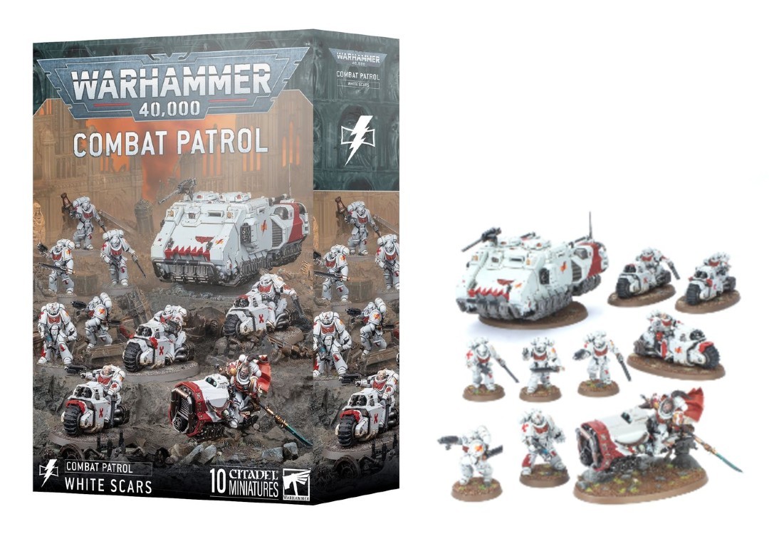 WARHAMMER 40K: COMBAT PATROL, WHITE SCARS The White Scars favor lightning-fast assaults, closing ranks with their enemies before they have a chance to prepare, and then rushing away to strike the next foe.