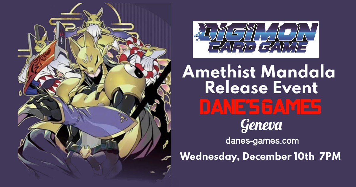 This Wednesday in Geneva we are holding the Digimon Amethyst Mandala Deck release event. If you ever wanted to learn how to play the game this event is for you!