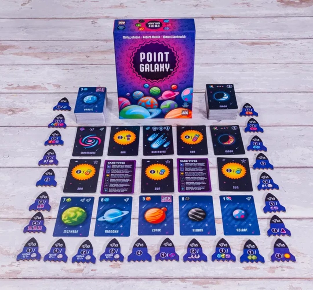 POINT GALAXY – Point Galaxy takes a simple concept of drafting cards and building the best combinations, and adds new layers of sequence building, set collection, and racing towards objectives to the mix – making the game easy to learn, but challenging for everyone!