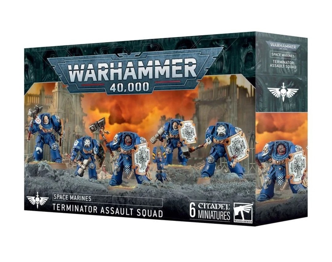 SPACE MARINES: Terminator Assault Squad – This multipart plastic kit builds five Assault Terminators, and their Teleport Homer, for your Space Marines armies in games of Warhammer 40,000.