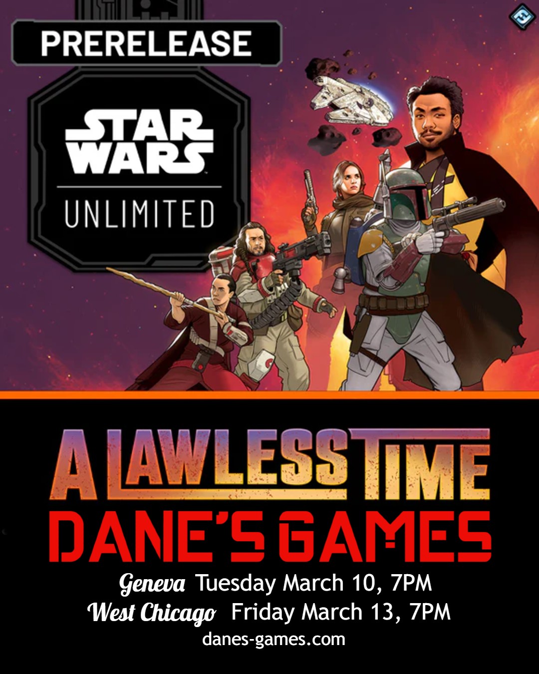 The Empire has fallen and lawlessness spreads across the galaxy! Star Wars Unlimited: A Lawless Time prerelease is this Friday at 7pm in West Chicago! Be the first to see the new cards and start building your deck! It is $30 to enter and there are packs to win!