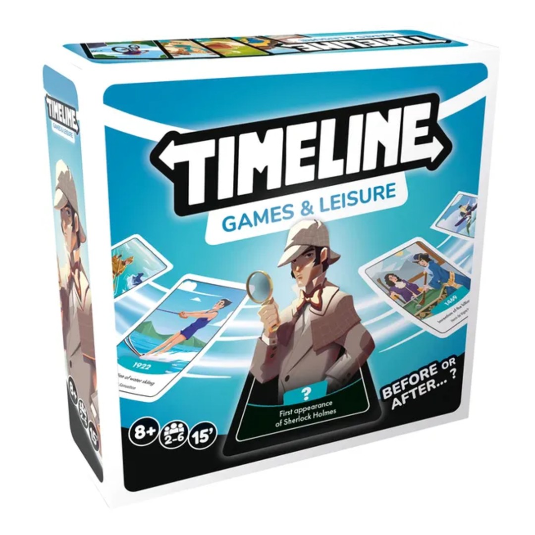TIMELINE: GAMES & LEISURE- Each card depicts a historical event, invention, or discovery. The cards need to be placed in correct chronological order or be removed. Once removed you draw another card. The first player to play all their cards wins.