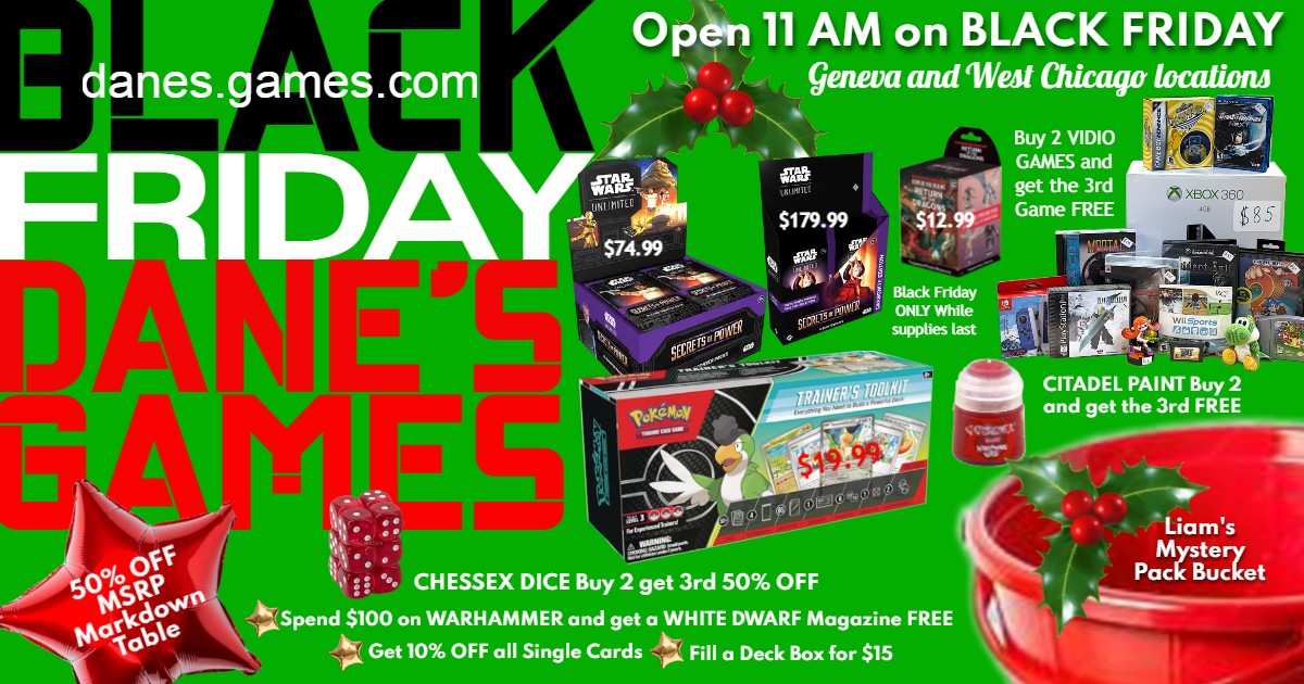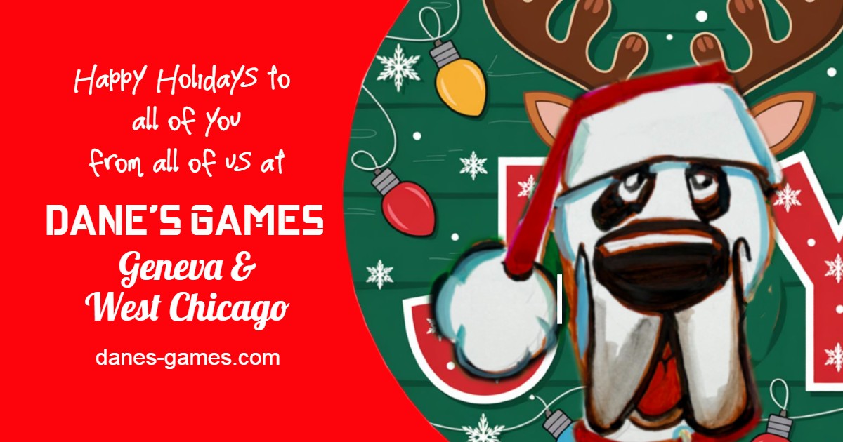 December 25th, 2025We here at Dane's Games wish you the happiest of holidays! We hope you are warm and cozy with those you love and can take a long deep breath after the holiday rush. We thank you for all you have done for us and look forward to seeing you again...