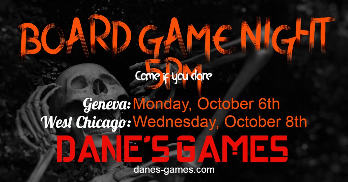 October 26th, 2025It is finally upon us! The night when the spirits of the dead return to walk amongst the living once more! Mwa Ha Ha Ha! Come on by and grab a creepy board game to play while the Boos and Ghouls come by to get their candy! Especially scarry...