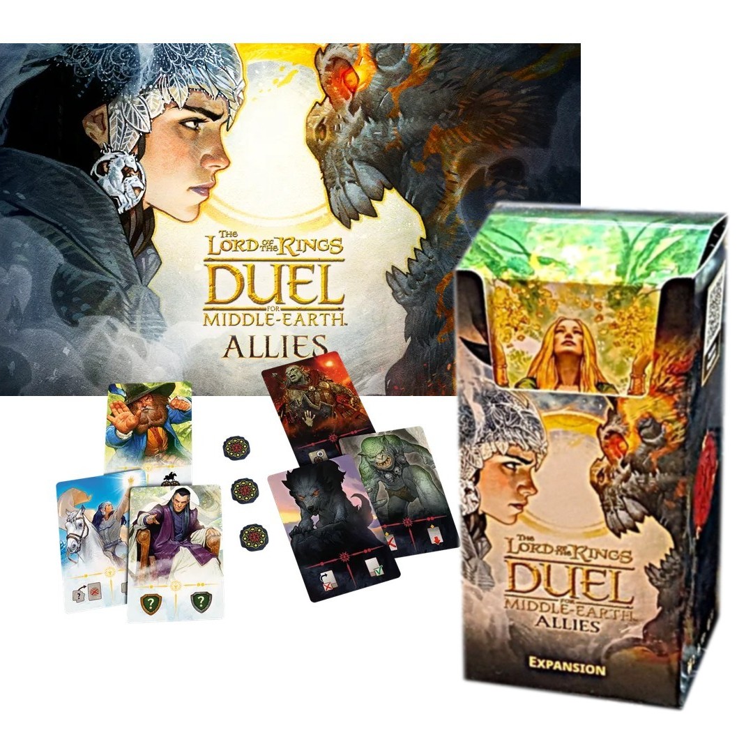 LORD OF THE RINGS- DUEL, Middle Earth Allies Expansion – Various characters from J.R.R. Tolkien’s universe will come to the aid of either the Fellowship or Sauron. Collect power tokens in each chapter and use them to call upon your allies and benefit from their effects.