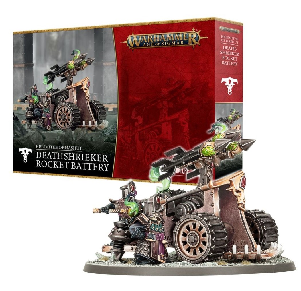DEATHSHRIEKER ROCKET BATTERY – Deathshrieker Rocket Batteries discharge their payloads as unholy screams split the air. Within the warheads bubbles the wicked fire of the Bullfather – a daemonic chemical flame